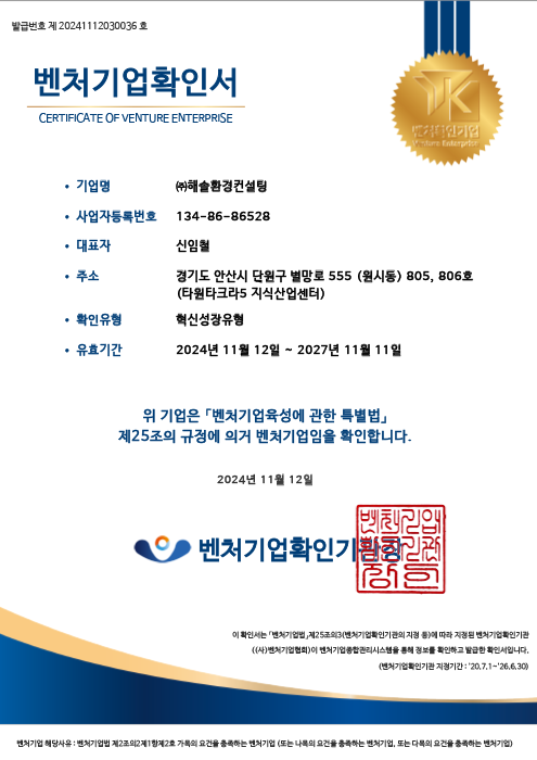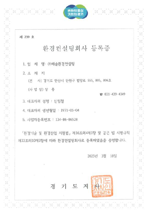 환경컨설팅회사 등록증