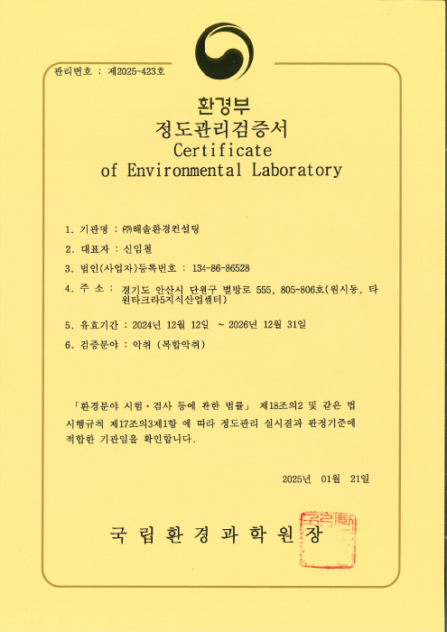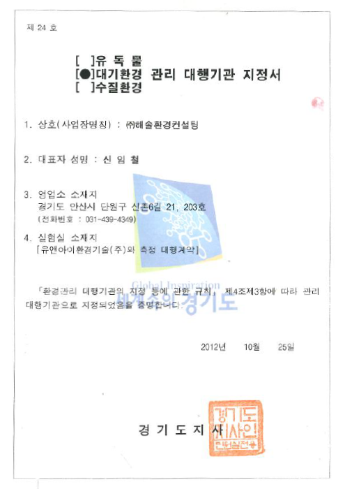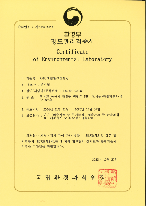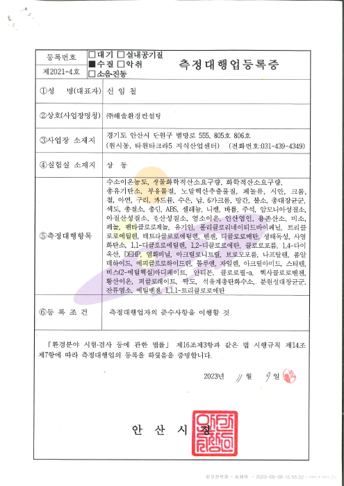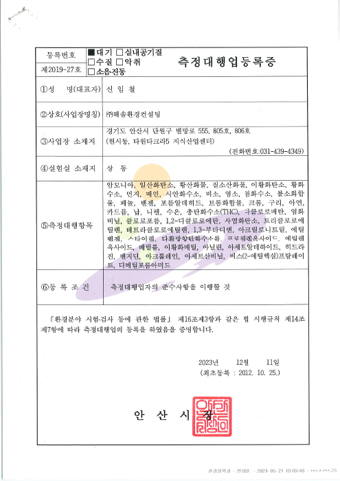 대기측정대행업 등록증