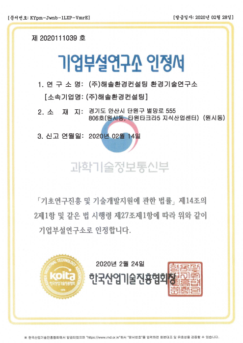 연구소 인정서